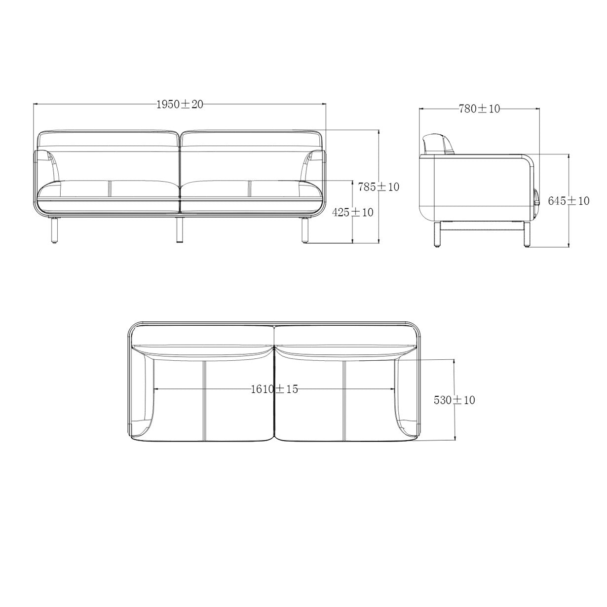 Overall Dimension: L1950 x D780 x H785mm; Seat Height: 425mm Seat Width: 1610mm Seat Depth: 530mm